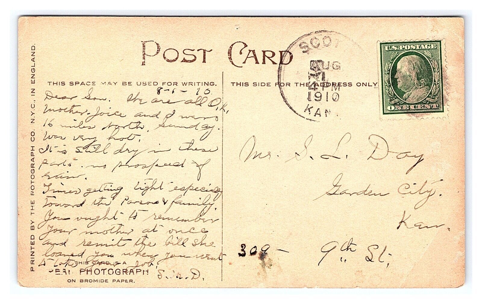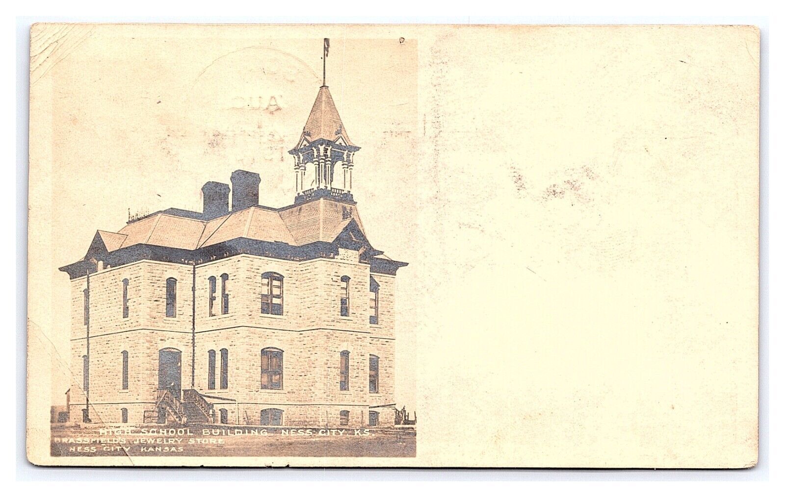 Postcard High School Building Ness City KS. Kansas RPPC c1910 Postmark