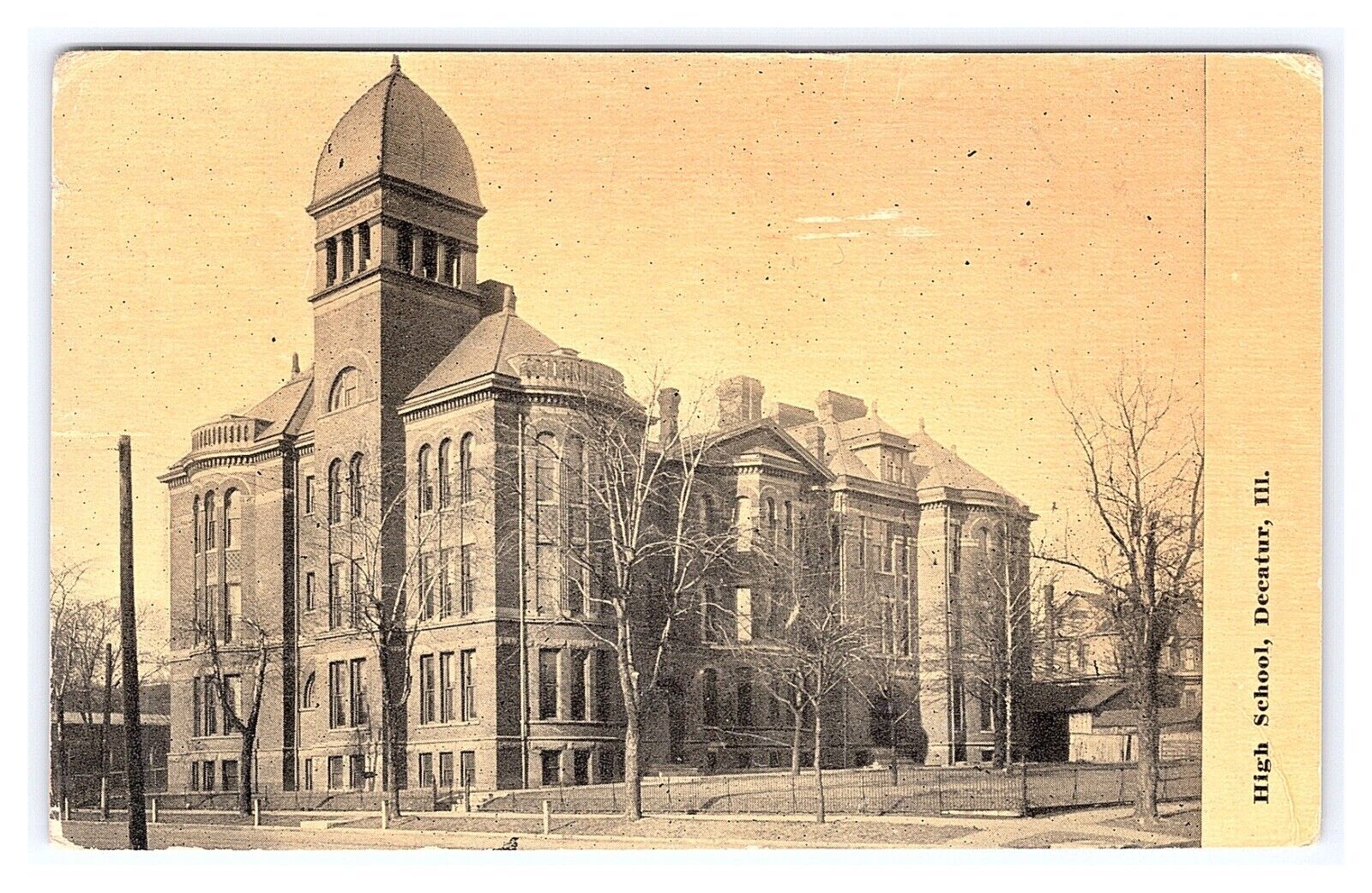 Condition: Mailed, Showing Wear From Handling. Writing On The Back. Reasonable Offers Always Considered. This vintage postcard depicts a high school in Decatur, Illinois, with a postmark dating back to around 1912. ... Read More