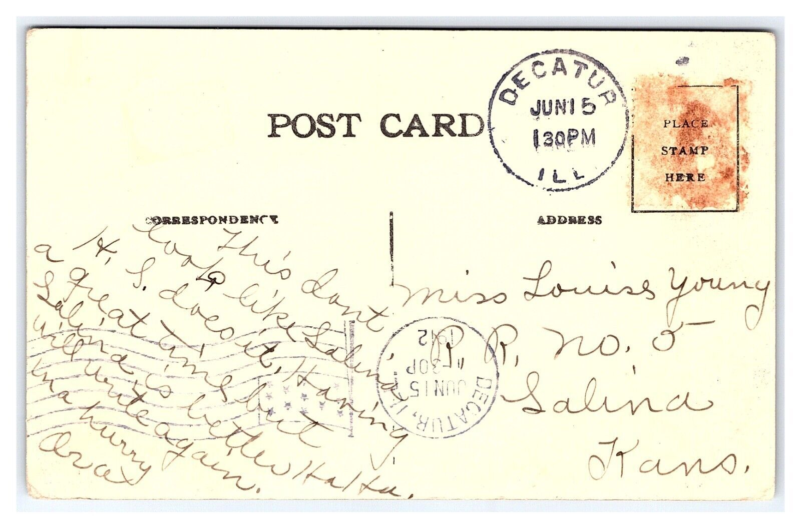 Postcard High School Decatur ILL. Illinois c1912 Postmark
