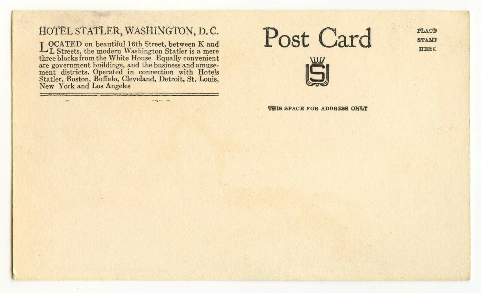 Condition: Unmailed, showing wear from handling. Postcard Hotel Statler Washington D.C. Standard View Card Postcard Enclosed in Clear Sleeve Placed Between 2 Pieces of Cardboard Shipped USPS First Class Ma ... Read More
