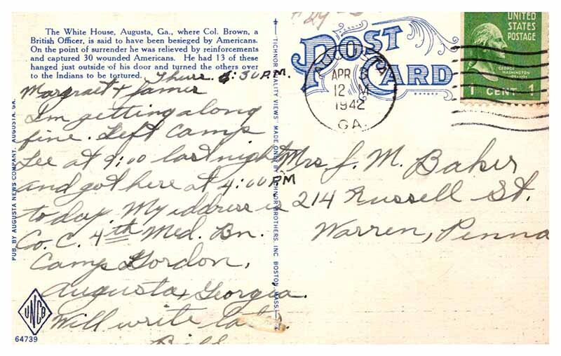 Postcard HOUSE SCENE Augusta Georgia GA AR6330