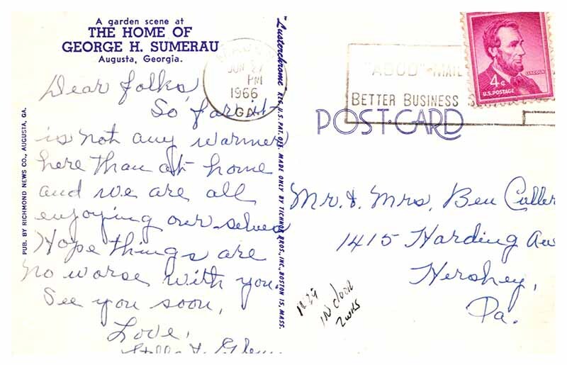 Postcard HOUSE SCENE Augusta Georgia GA AT4896