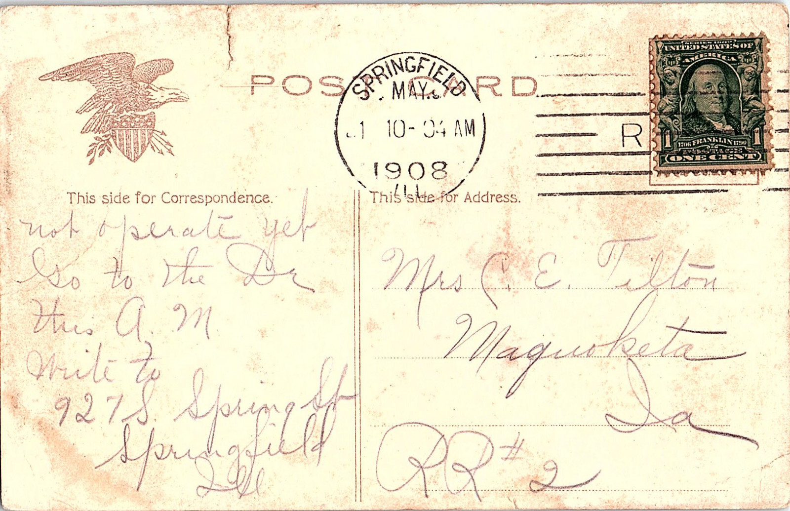 Postcard HOUSE SCENE Springfield Illinois IL AI4823