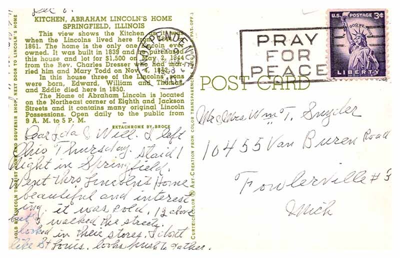 Postcard HOUSE SCENE Springfield Illinois IL AT4015