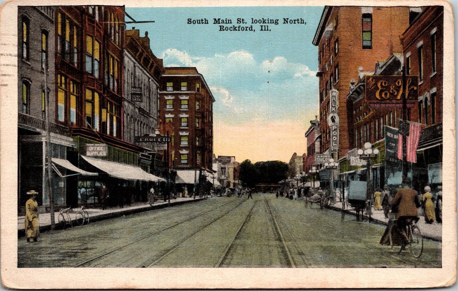 Postcard Illinois Rockford South Main Street View Streetcar Tailor Shop 1917 V42