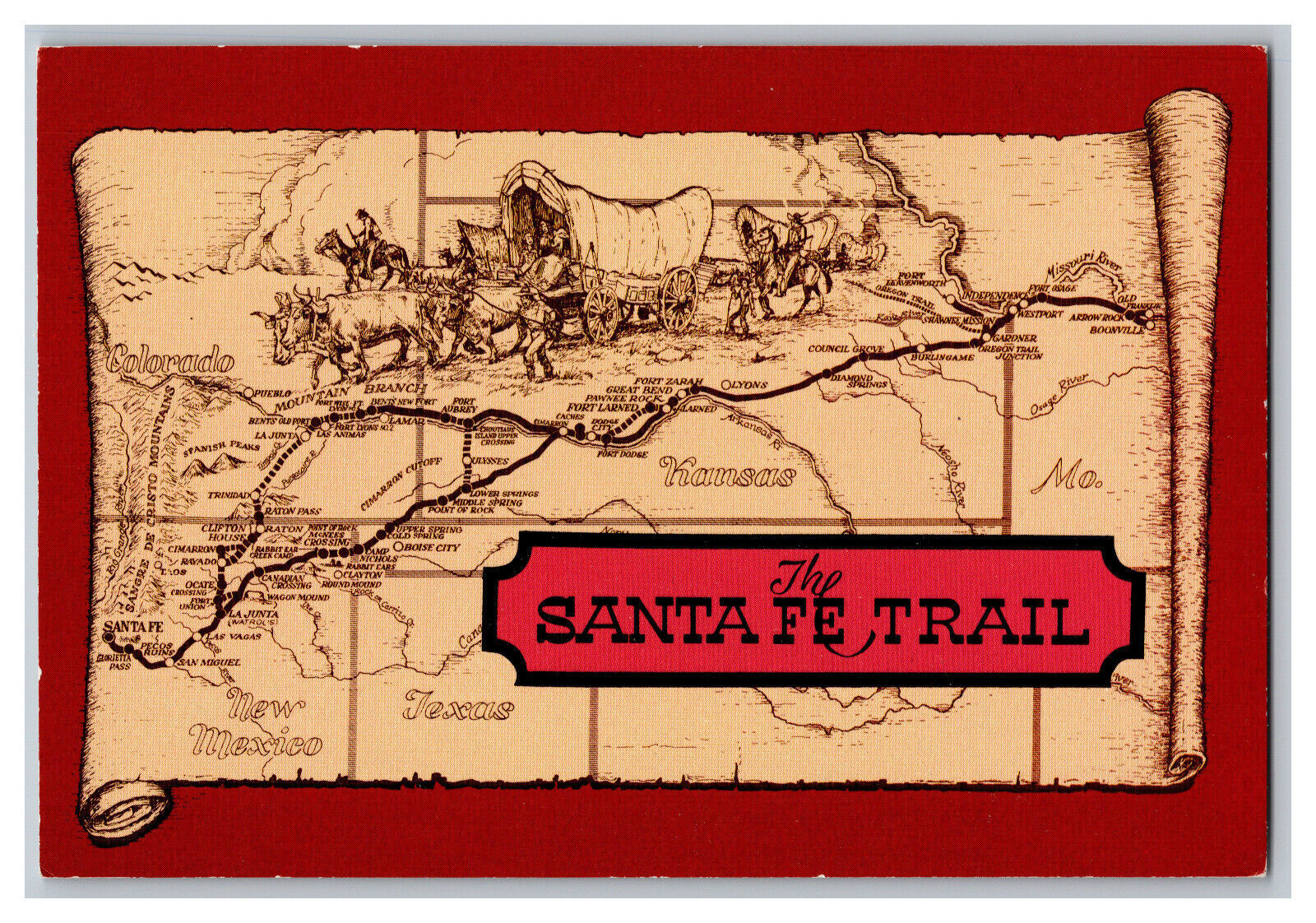 Postcard KS The Santa Fe Trail Continental View Card Map