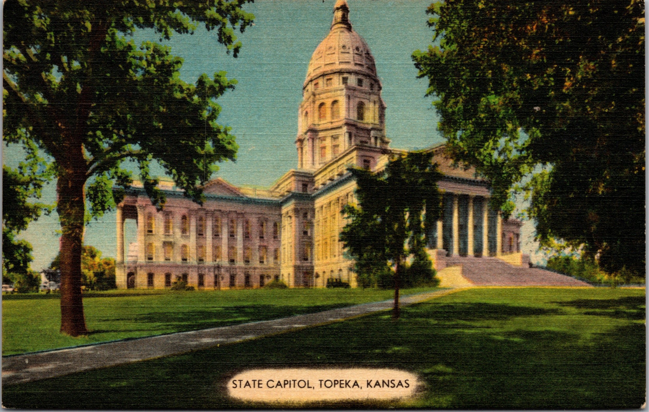 Postcard KS Topeka State Capitol Exterior view with trees