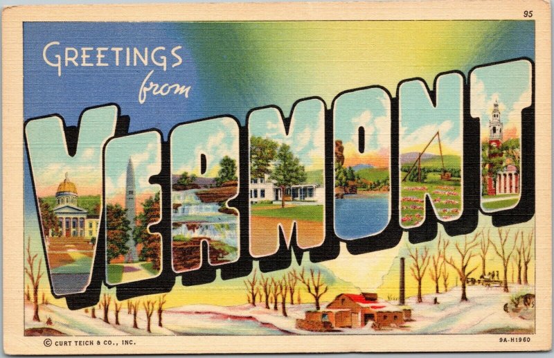 postcard large letter - Greetings from Vermont - Curt Teich