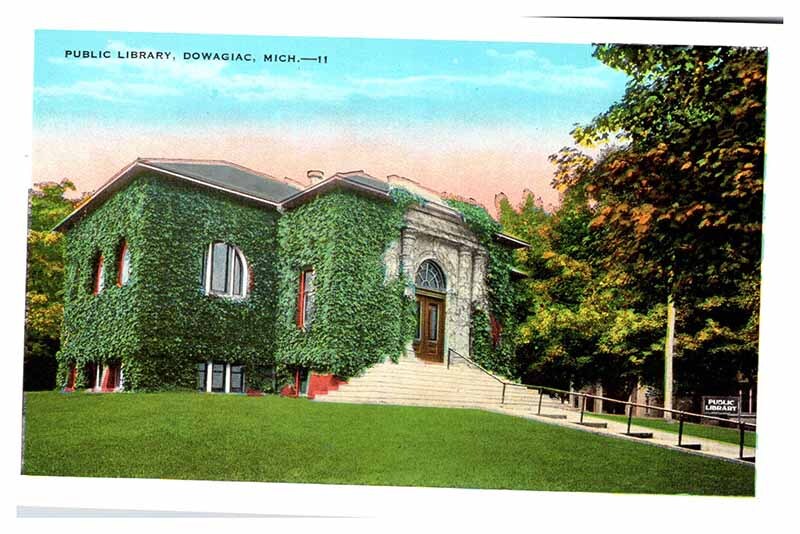 Postcard LIBRARY SCENE Dowagiac Michigan MI AU9089