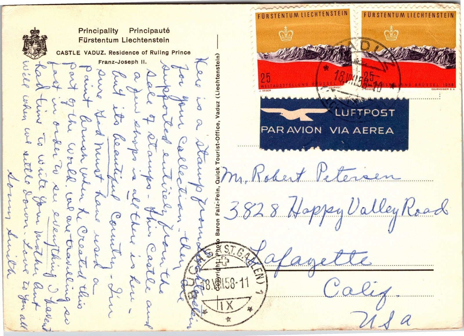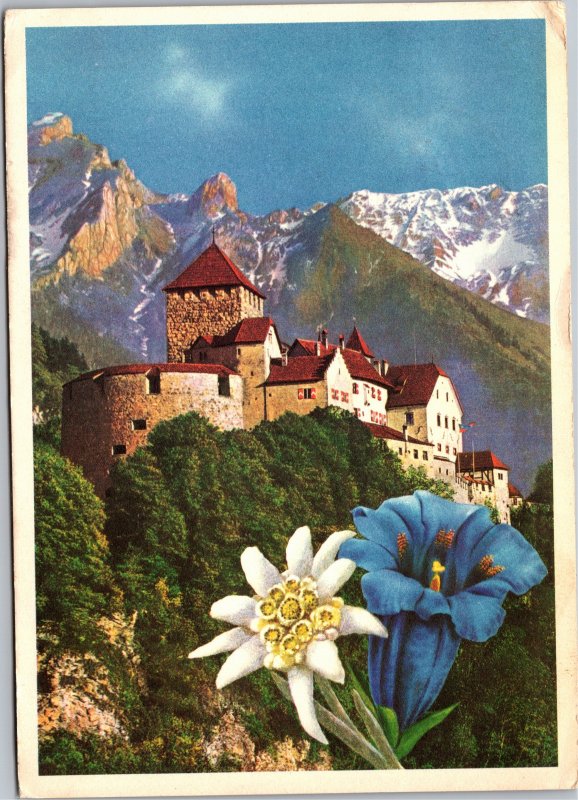Postcard Liechtenstein Castle Vaduz with flowers