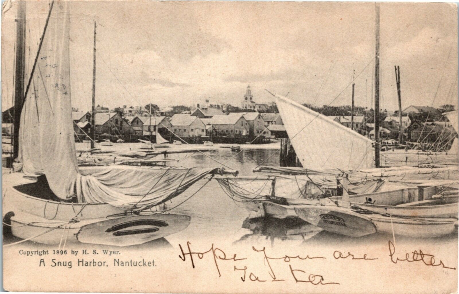 Postcard MA Nantucket A Snug Harbor View of Town Sailing Boats 1906 K12 - Publ. Harry S. Wyer. Powered by SixBit's eCommerce Solution
