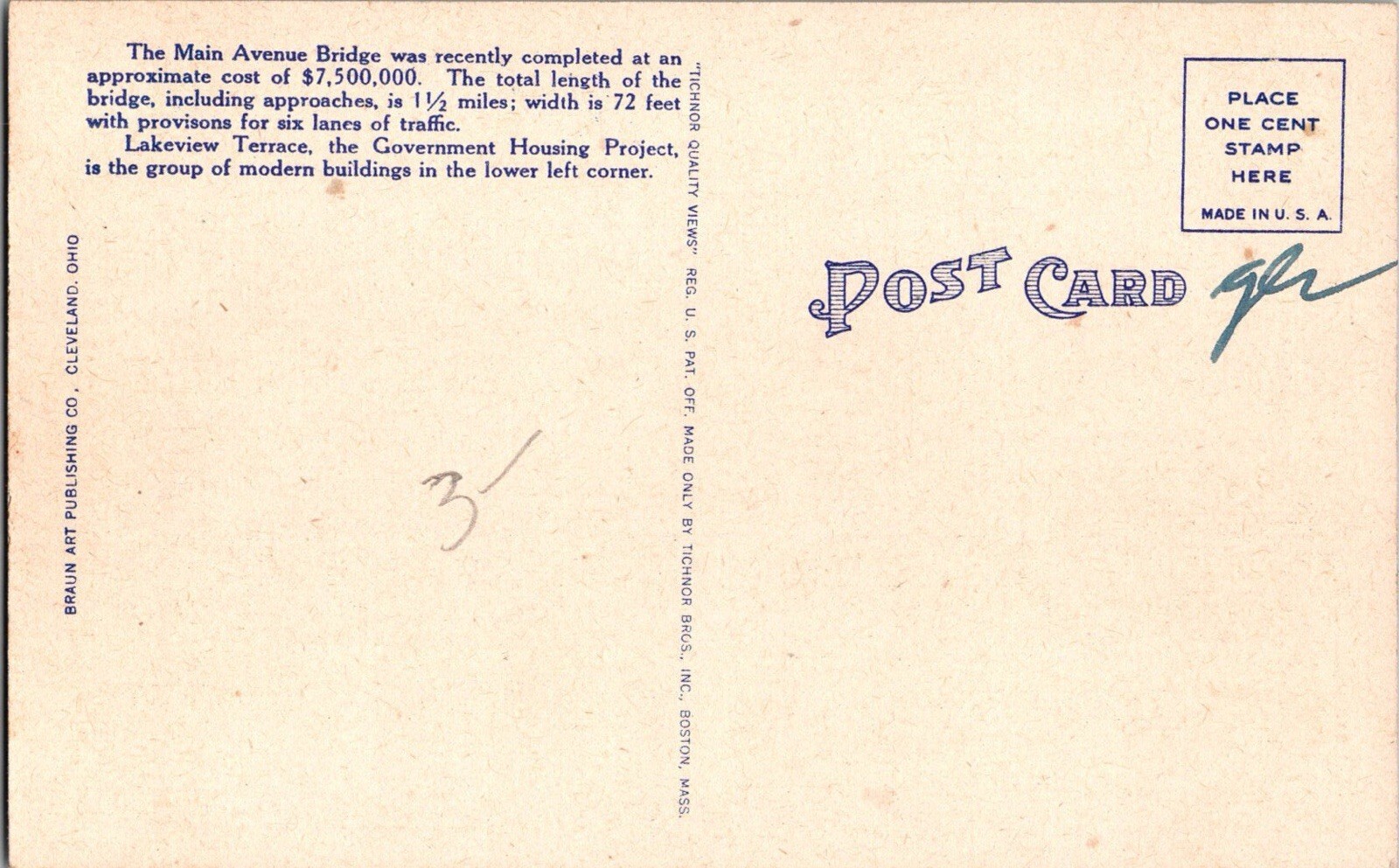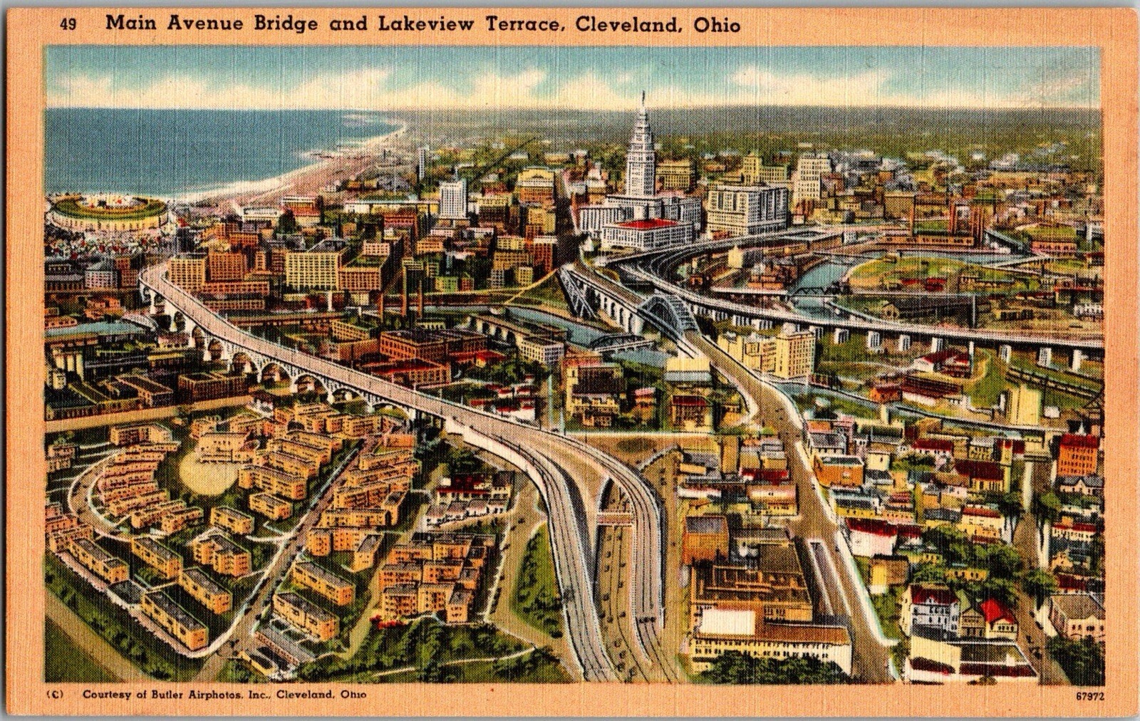 Postcard Main Avenue Bridge Cleveland Ohio Stadium KF13