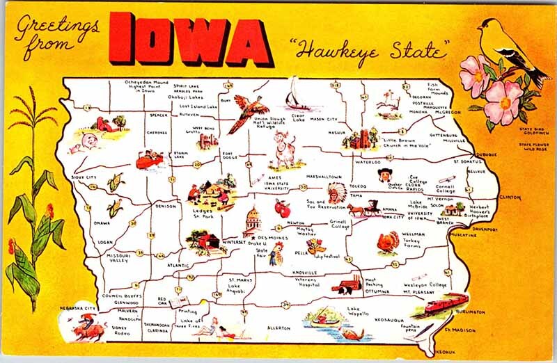 Postcard MAP SCENE Des Moines Iowa IA AK3033