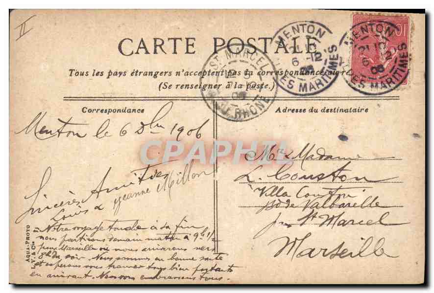 Postcard Menton Old Town and Fort Boat