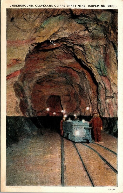 Postcard MI Ishpeming Underground Cleveland Cliffs Shaft Mine Interior ~1920 M53