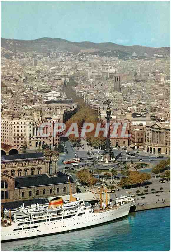 Postcard Modern Barcelona Quai de Mallorca Gate of Peace Boat and Ramblas