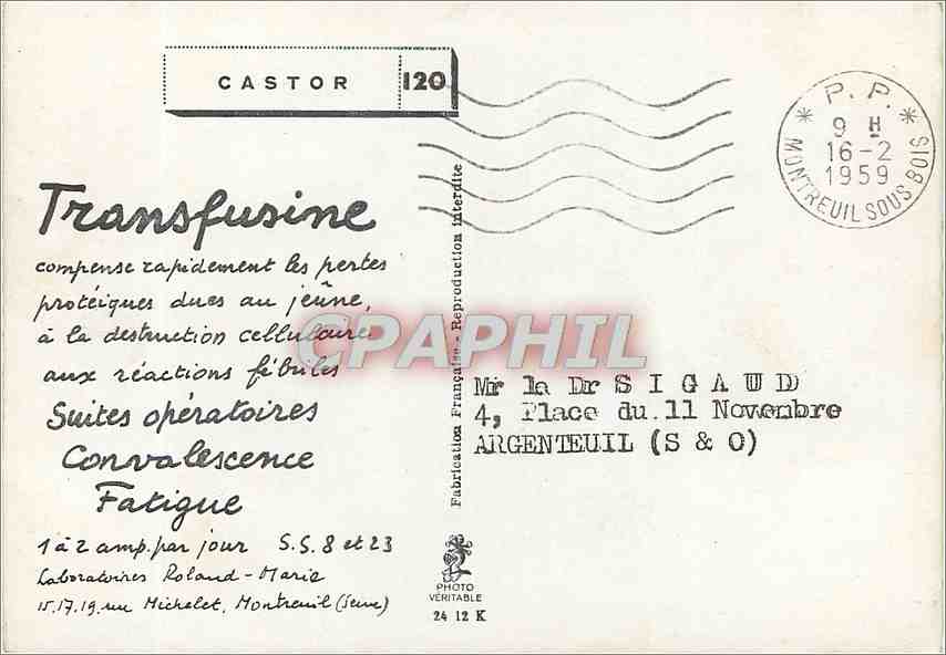 Postcard Modern Castor Advertisement Transfusine