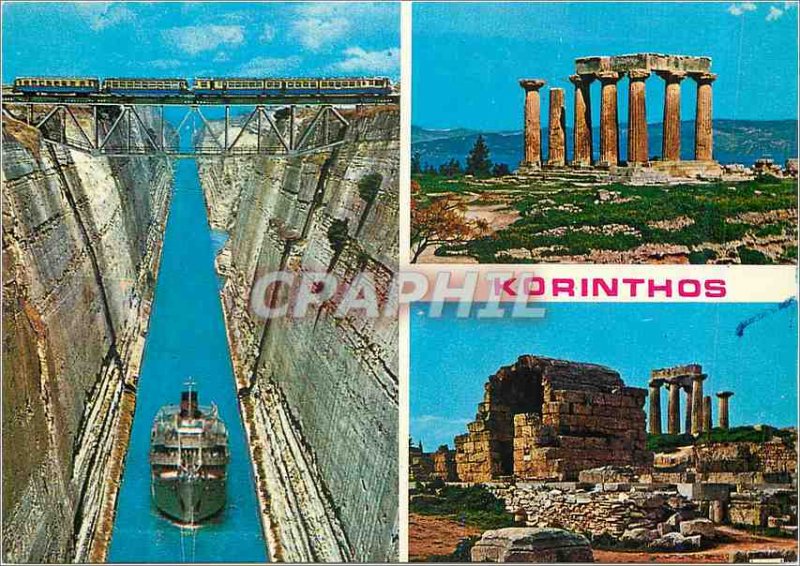 Postcard Modern Corinth Canal Boat Train