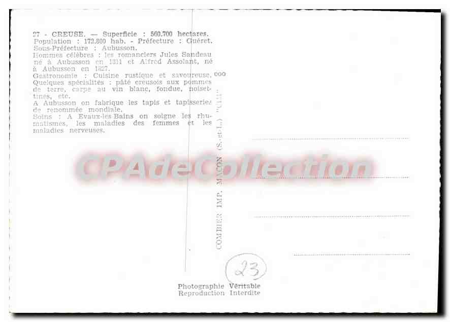 Postcard Modern Creuse Aubusson Area Population