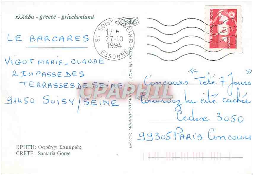 Postcard Modern Farangi Crete Greece Samaria Gorge