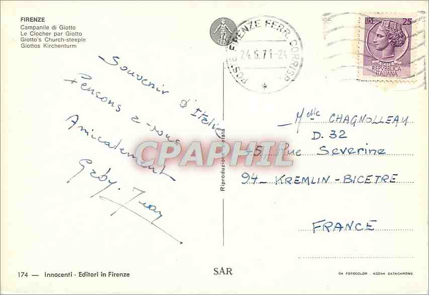 Postcard Modern Firenze bell tower by Giotto