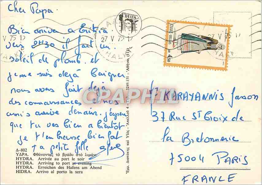 Postcard Modern Hydra Arrive at the Port Evening Boat