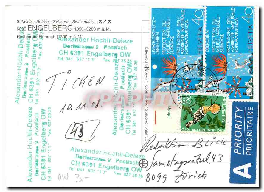 Postcard Modern Switzerland Engelberg Restaurant Fluhmatt