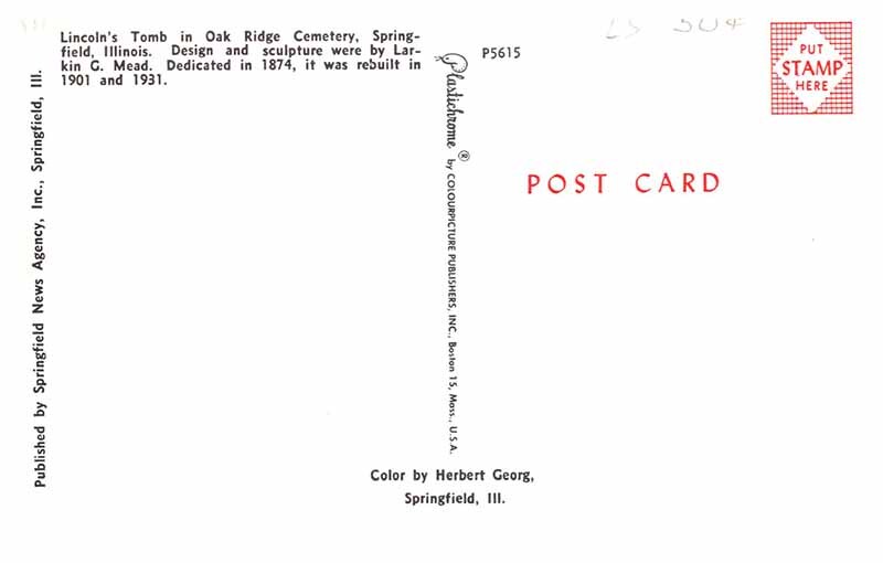 Postcard MONUMENT SCENE Springfield Illinois IL AS9639