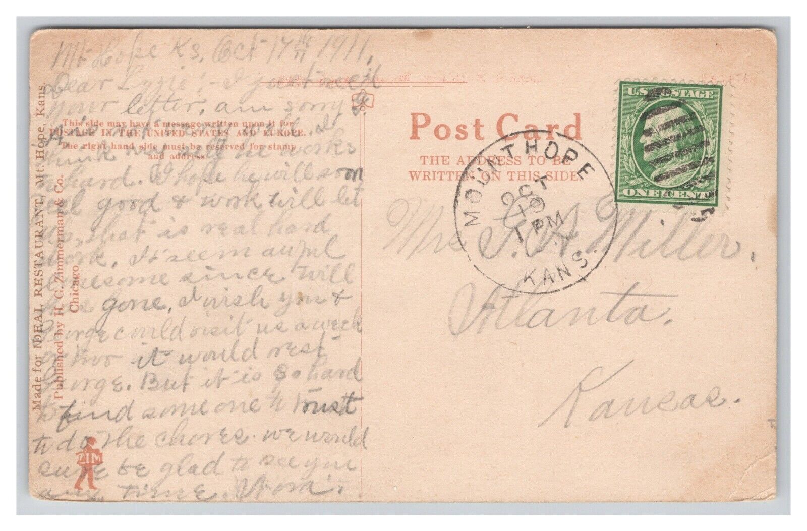 Condition: Mailed, Showing Wear From Handling. Writing On The Front And Back. Glue Residue On Top Edge Of ... Read more about the seller notes Mailed, Showing Wear From Handling. Writing On The Front And Back. Glue ... Read More