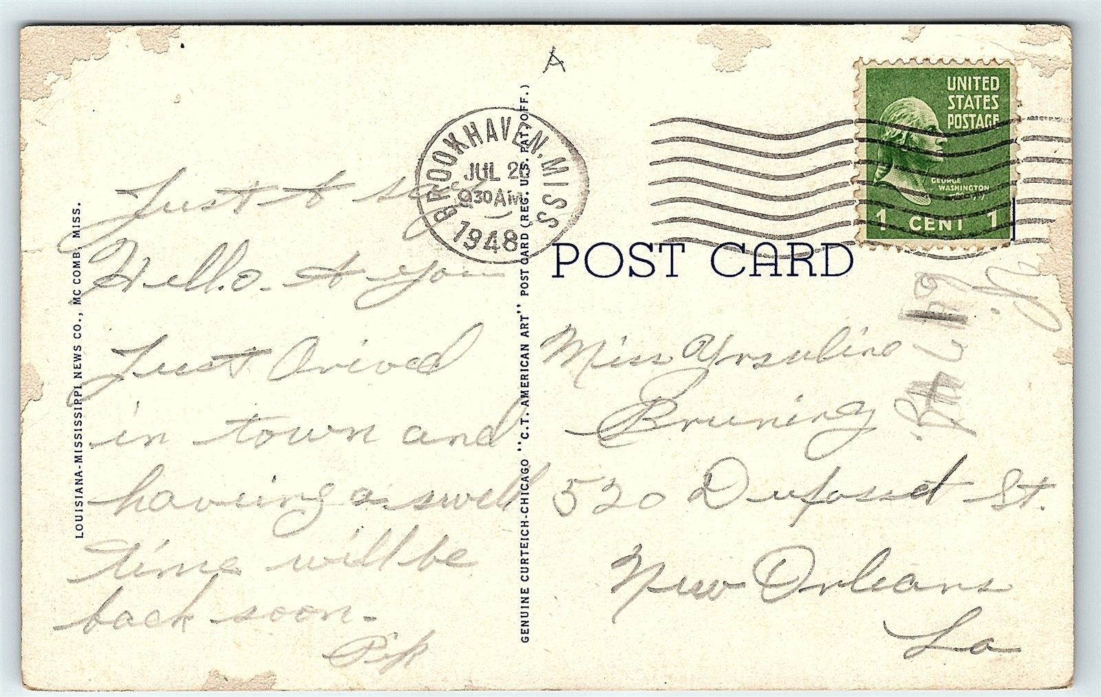 Postcard MS Brookhaven First Baptist Church B29 - postally used - linen Eras: * Government Postal Card * Pioneer (1893-1898) * Private Mailing Card (typically 1898-1901) * Undivided Back (1901-1907) * Divided ... Read More