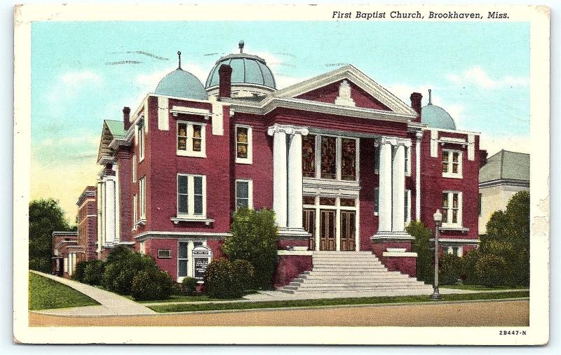 Postcard MS Brookhaven First Baptist Church B29