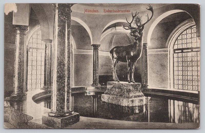 Postcard Munich Germany Hubertusbrunnen Statue 1910s DB View