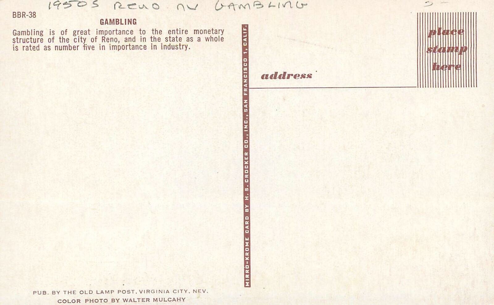 Postcard Nevada Reno 1950s Gambling Interior 23-1971