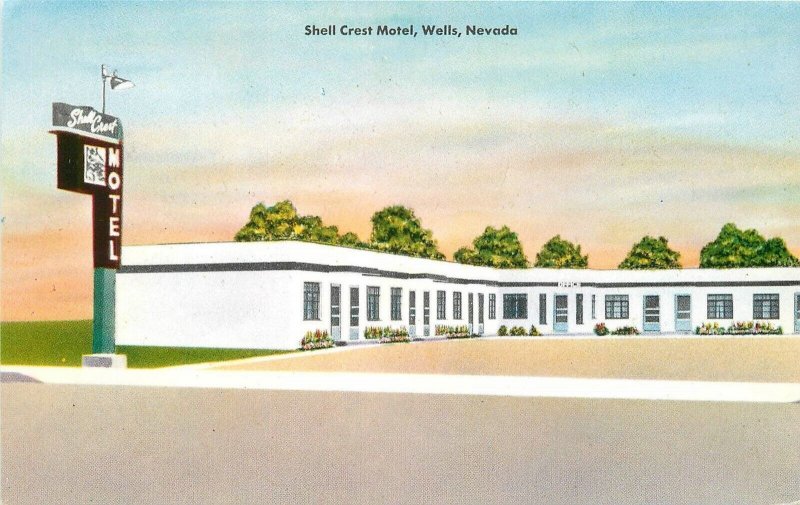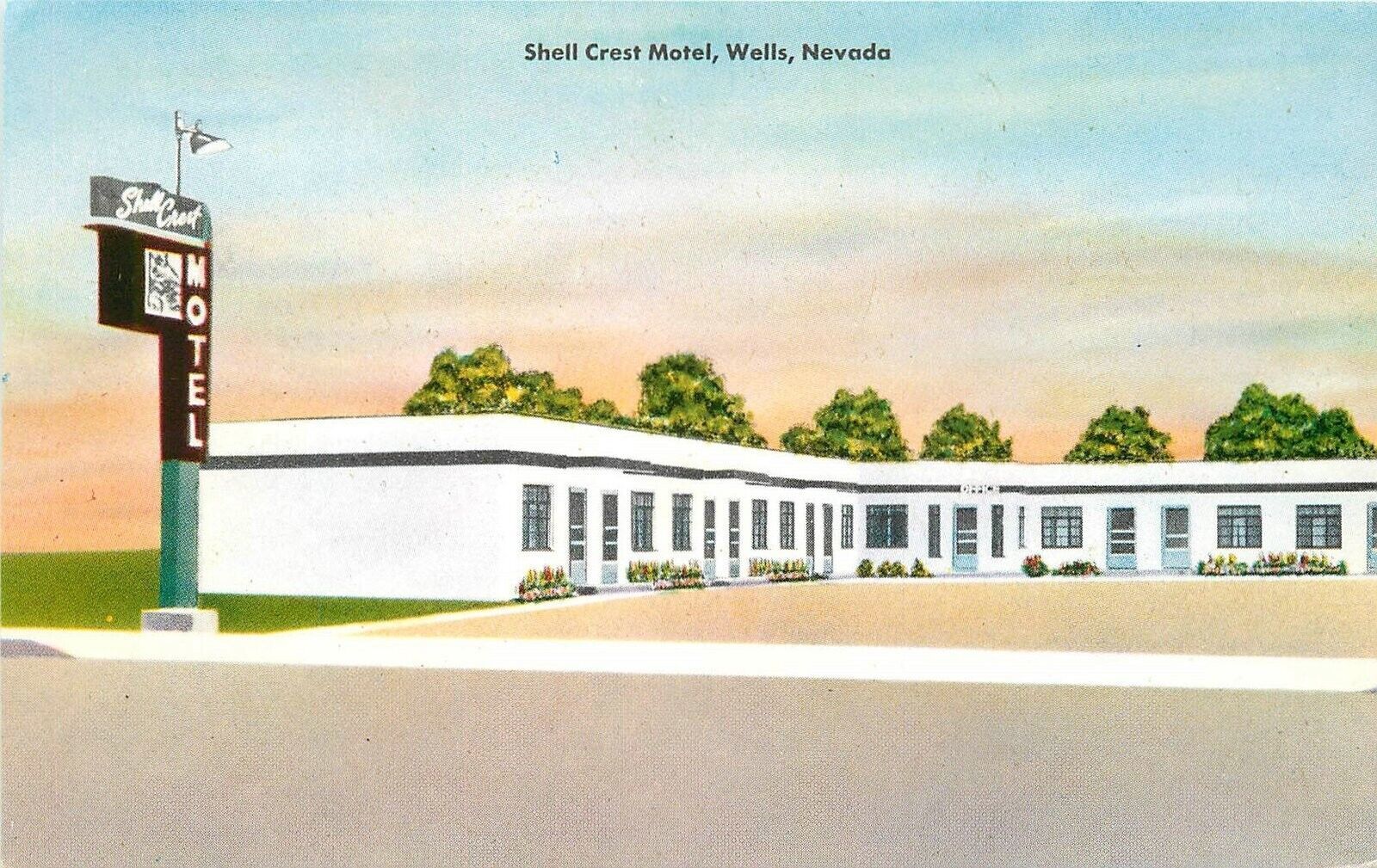 Postcard Nevada Wells Shell Crest Motel occupation Singleton 23-8329