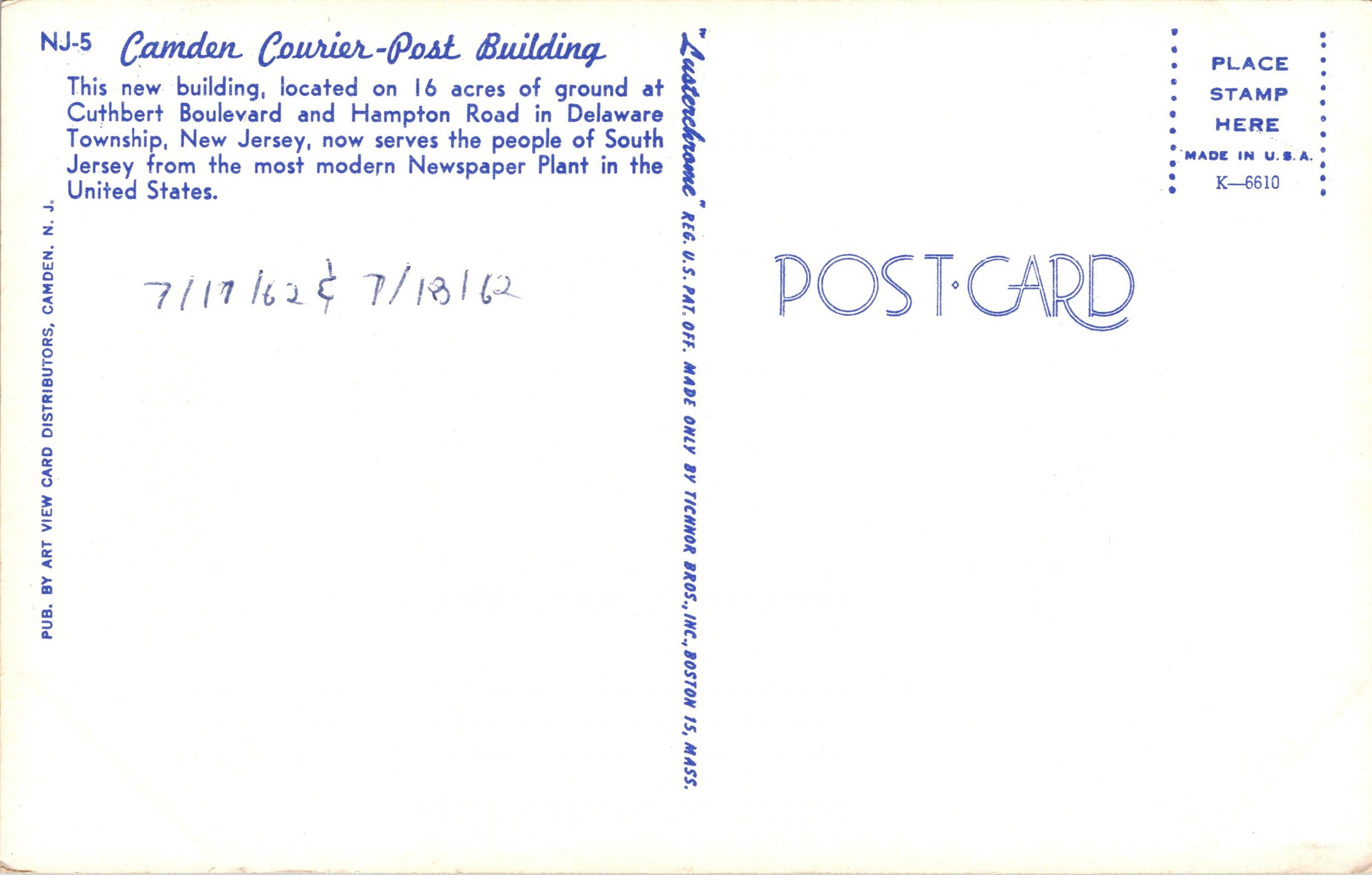 Postcard NJ Camden Courier-Post Building