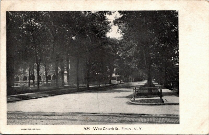 Postcard NY Elmira West Church St. Streetcar Tracks - Duplex Cancel 1908 M25 - Publ. Souvenir Post Card Co. No. 7685 Powered by SixBit's eCommerce Solution