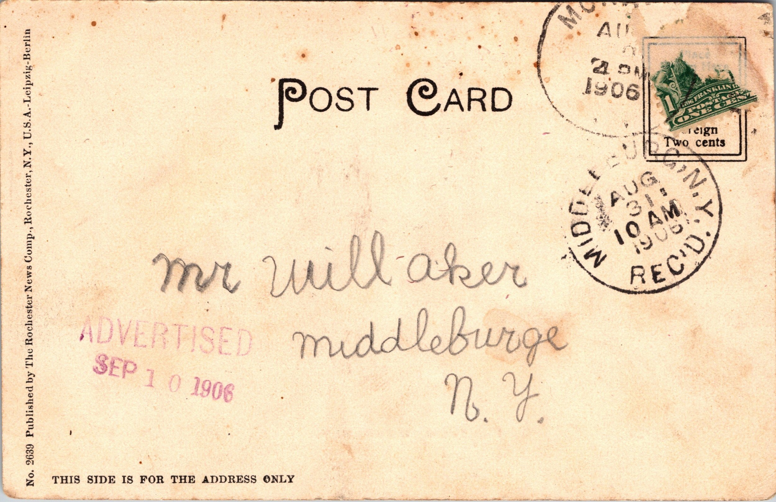 Early postcard showing the High School in Mohawk New York with students near the front steps. Postmarked 1906. Light pencil writing on the front and typical age toning with modest corner wear. Strong architectural v ... Read More