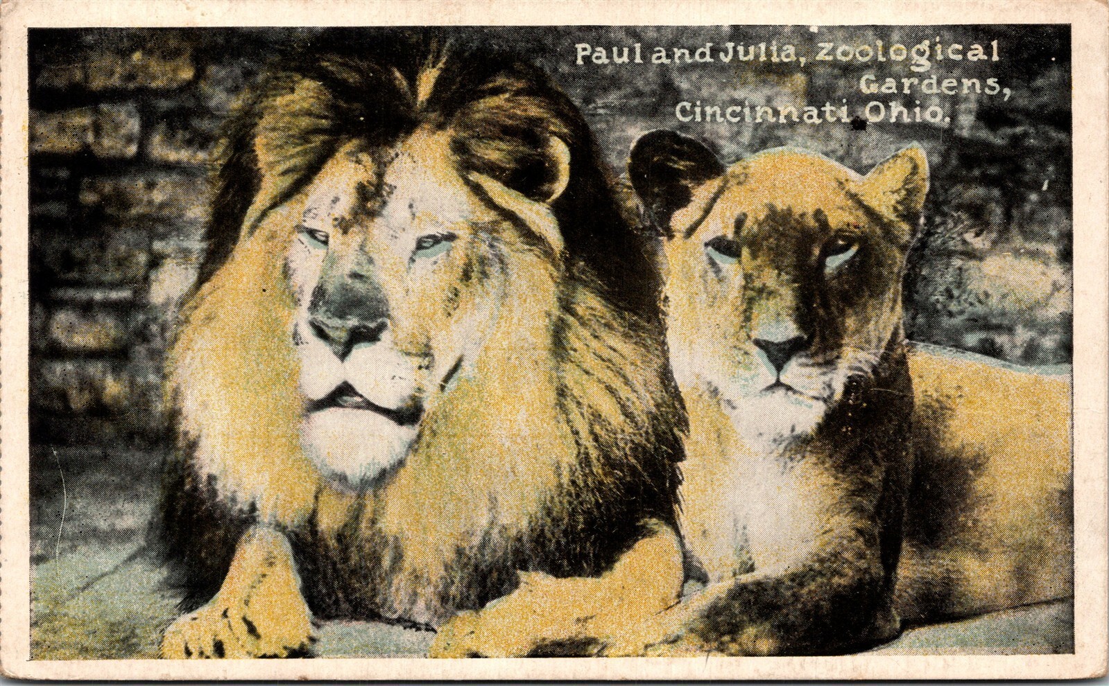 Postcard Ohio Cincinnati Paul & Julia Lions Zoological Gardens 1919 V157