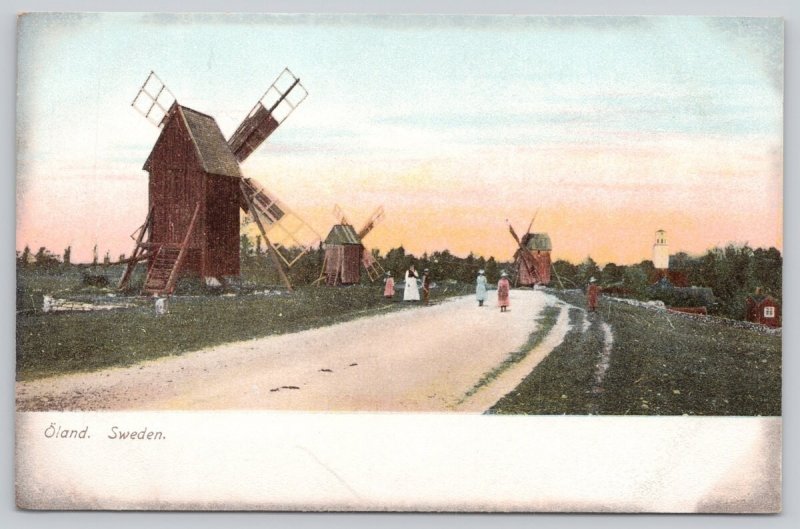 Postcard Oland Sweden Windmills Sunset White Border 1900s UDB View