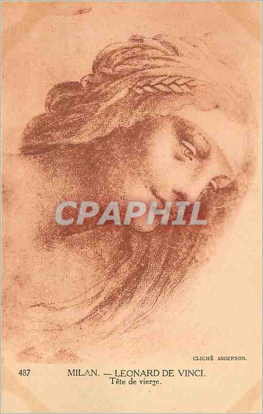 Postcard Old 487 milan leonard da vinci virgin head
