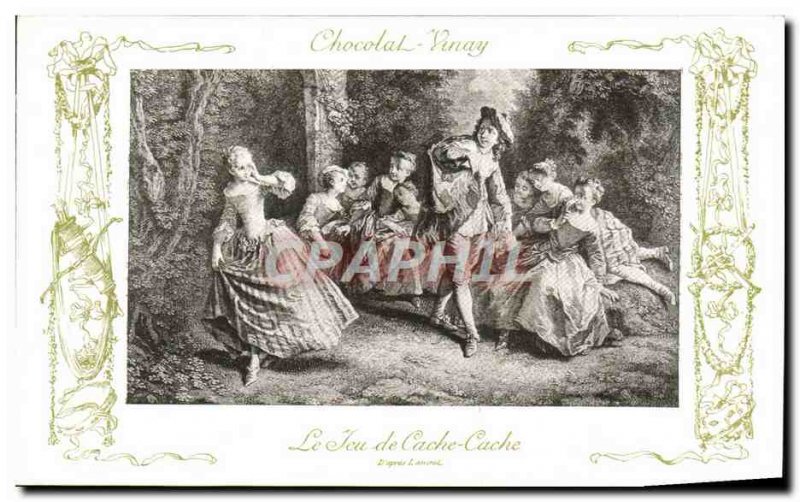Postcard Old Advertisement Fancy Chocolate Vivay Cache Cache game Lancret