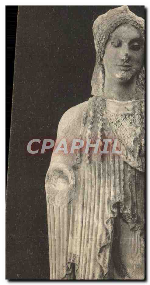 Postcard Old Archaic female statue Athens