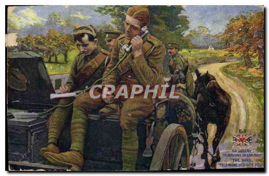 Postcard Old Army Campaign Phone