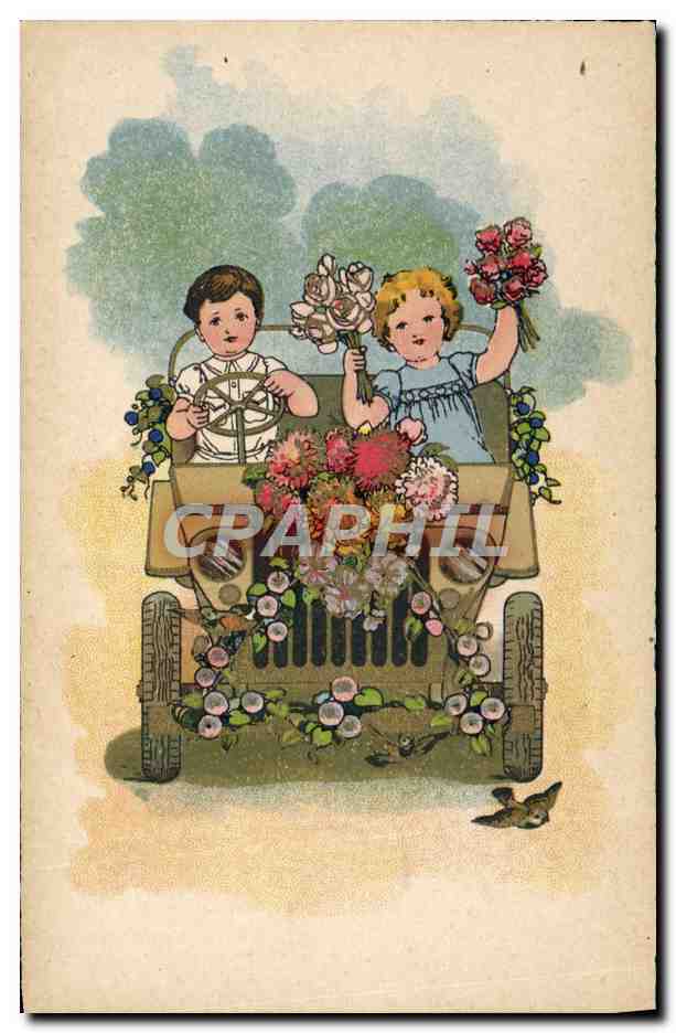 Postcard Old Automobile Children