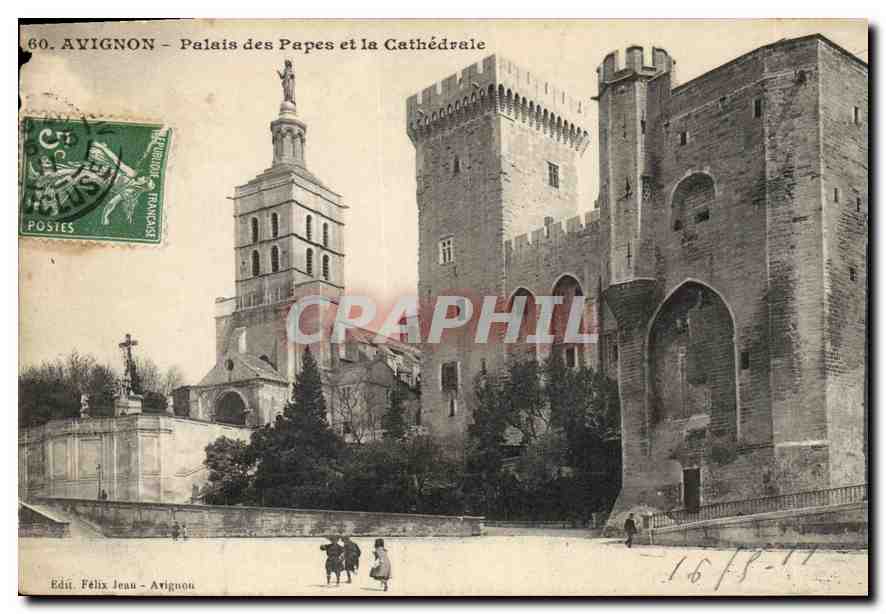 Postcard Old Avignon Popes' Palace and the Cathedral