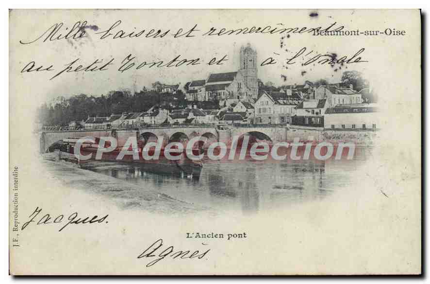 Postcard Old Beaumont Sur Oise old bridge