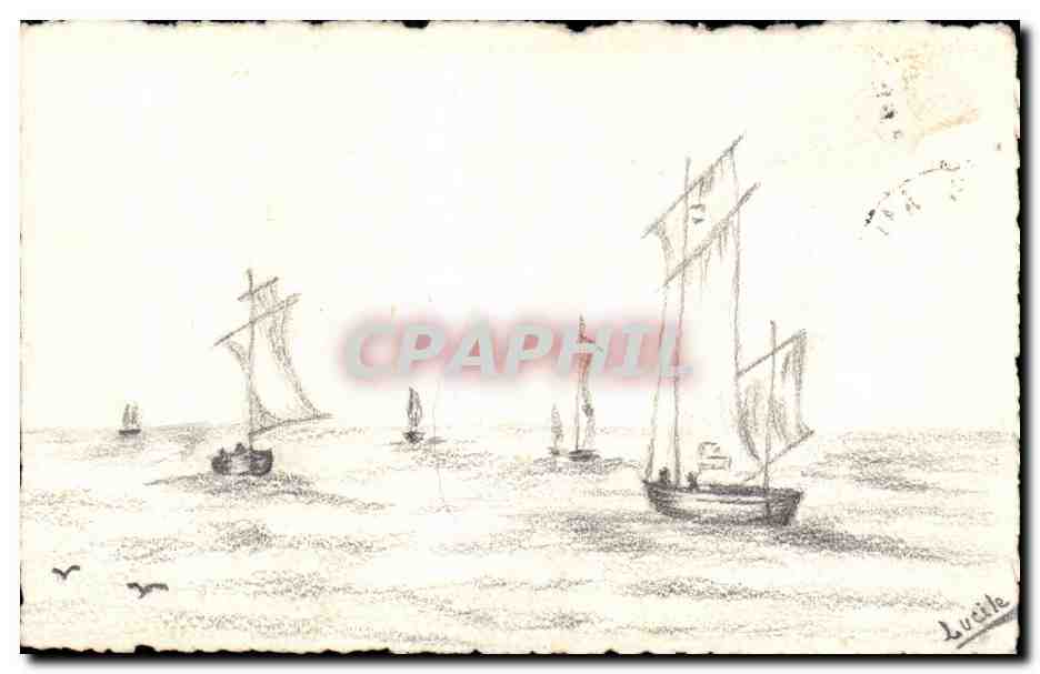 Postcard Old Boat pencil drawing by hand
