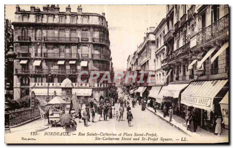 Postcard Old Bordeaux Rue Sainte Catherine and St. Project