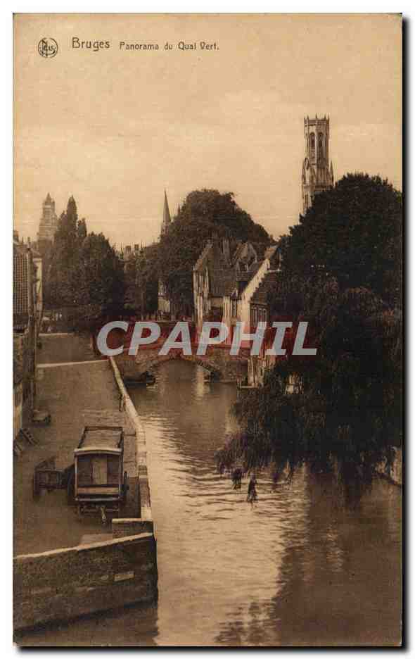 Postcard Old Bruges Panorama Green Quay
