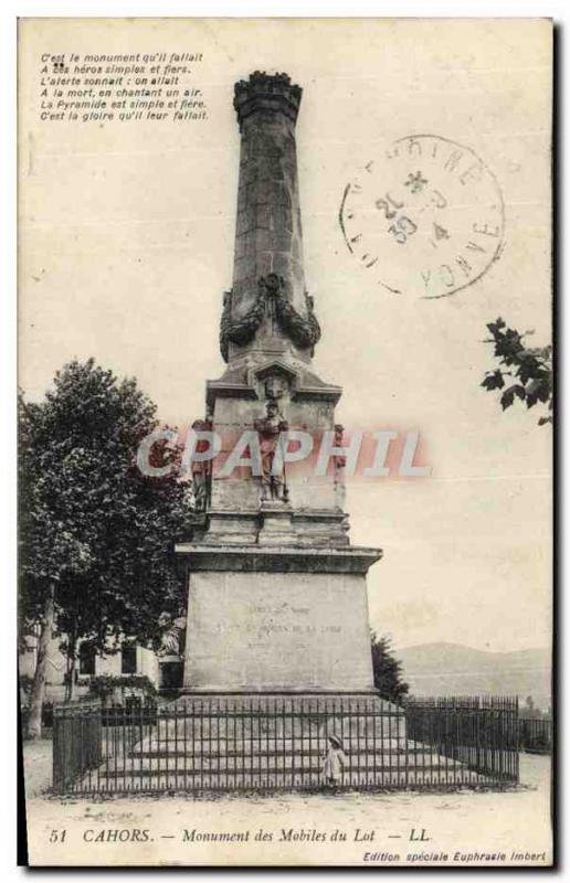 Postcard Old Cahors Monument mobile Lot militaria